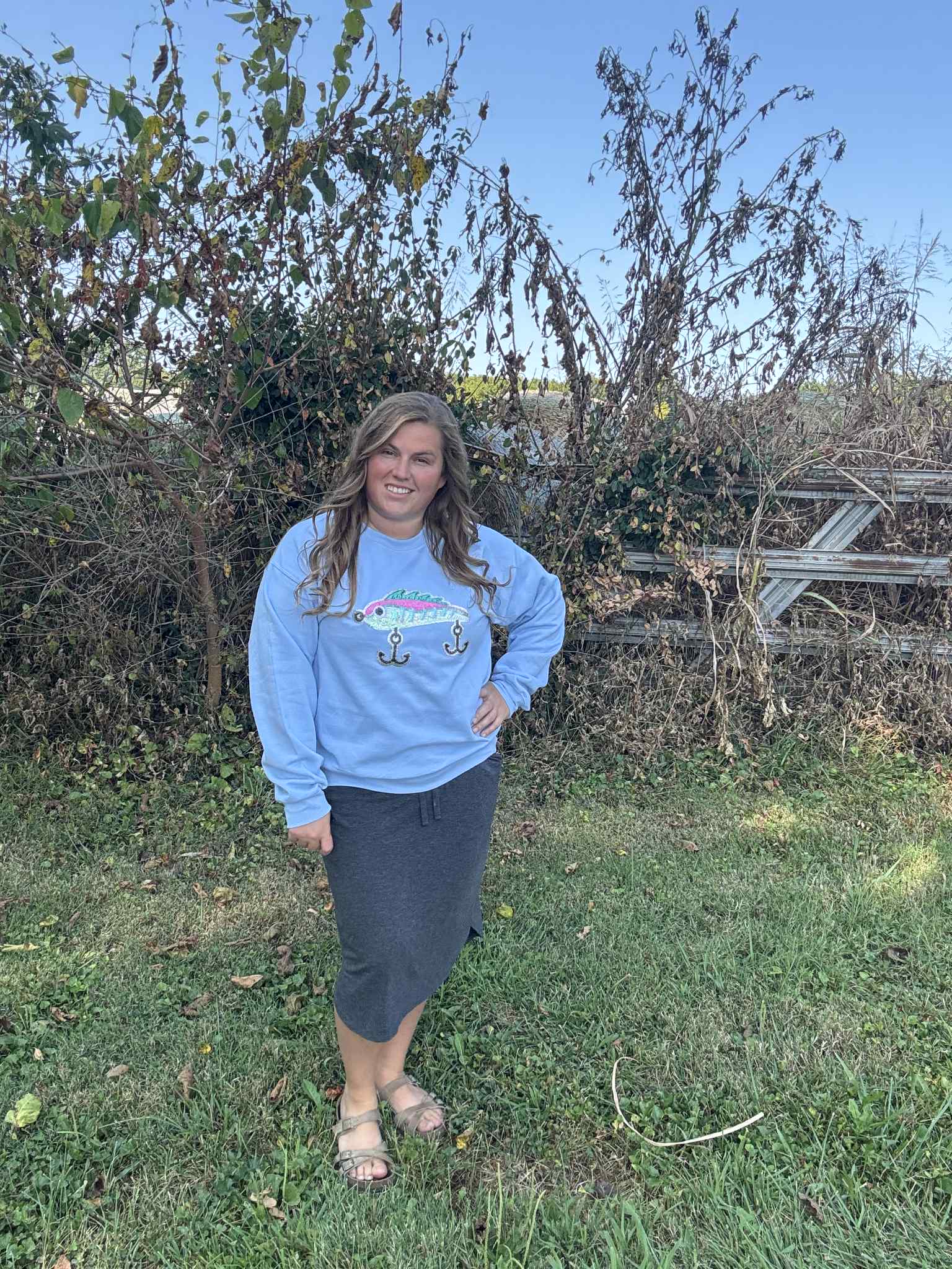 Catch eyes before you catch fish. This cozy crewneck features a glittery sequin lure that shines almost as bright as your personality. Perfect for lake days, casual hangs, or when you want everyone to know you’ve got style that hooks